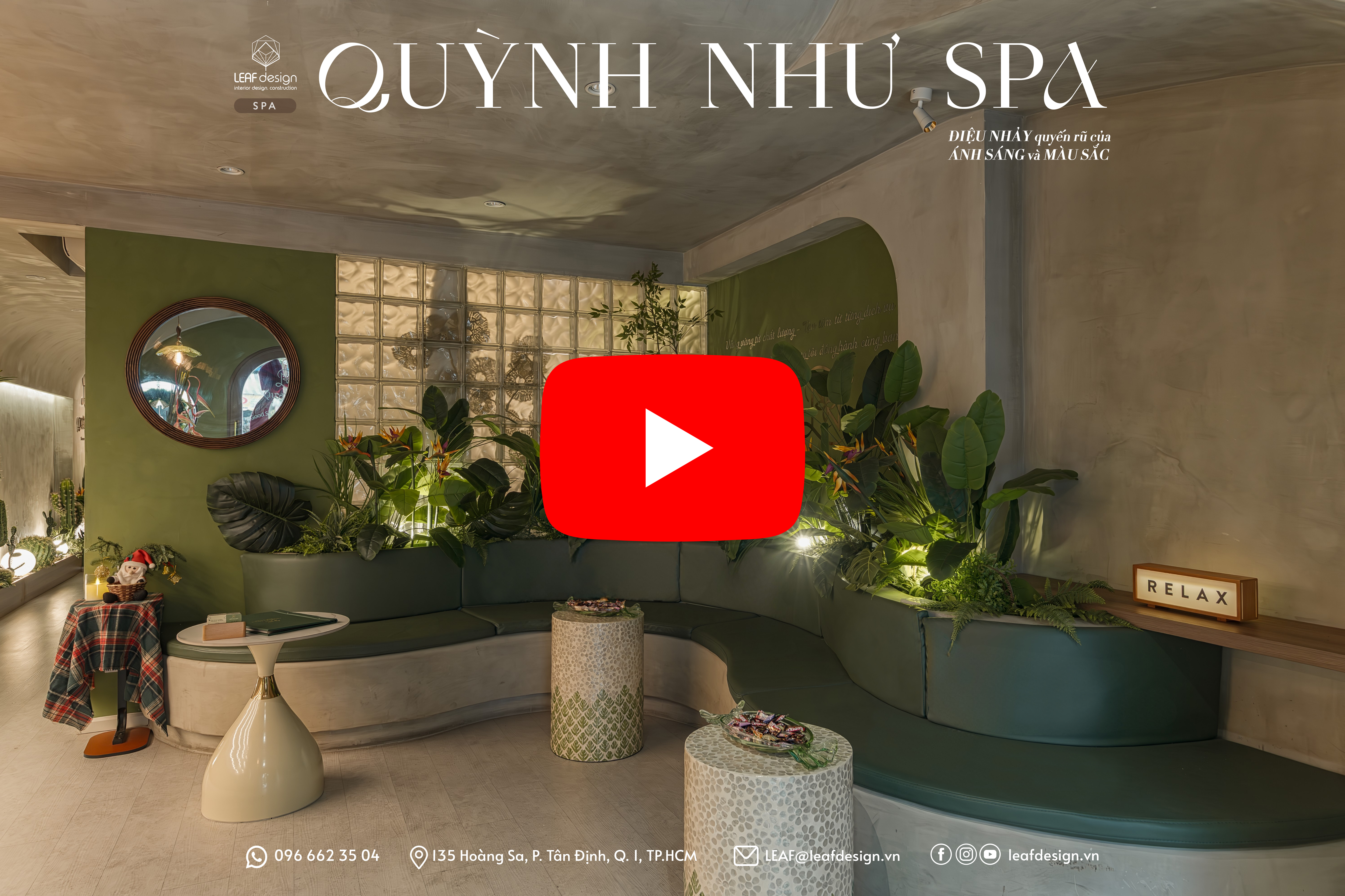Với trọng tâm là xử lý hình khối và ánh sáng, Leaf đã tạo nên những đường vòm mềm mại nhưng sắc nét chạy dọc không gian. Các mảng tường, gạch men và gạch kính được xử lý khéo léo để đạt hiệu ứng bắt sáng nhẹ, giúp bề mặt có chiều sâu và làm không gian trở nên sinh động hơn. Khi kết hợp cùng mảng màu xanh rêu và gỗ sáng, tổng thể trở thành một nhịp điệu êm dịu, mang lại cảm giác thư giãn ngay từ ánh nhìn đầu tiên.