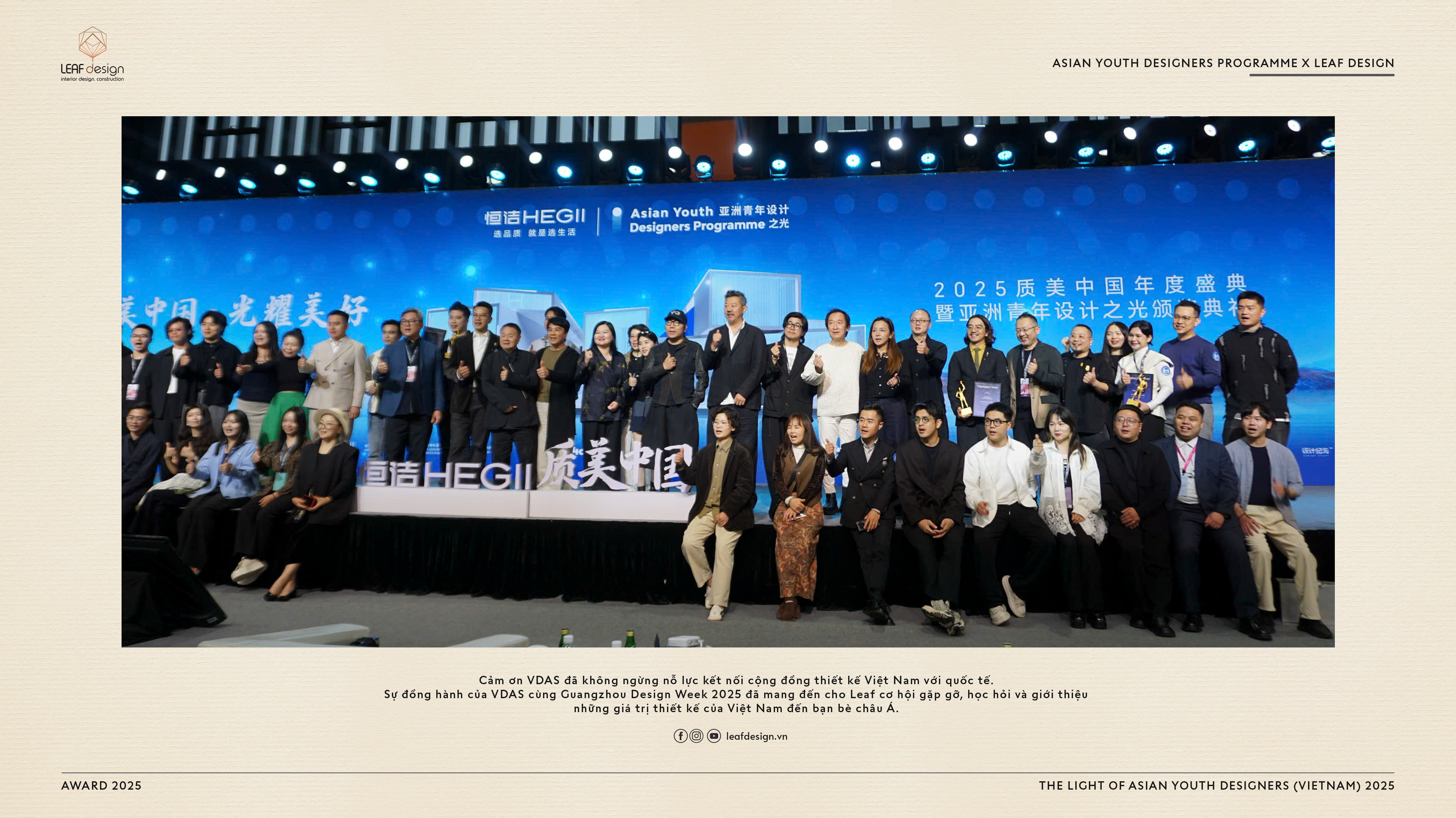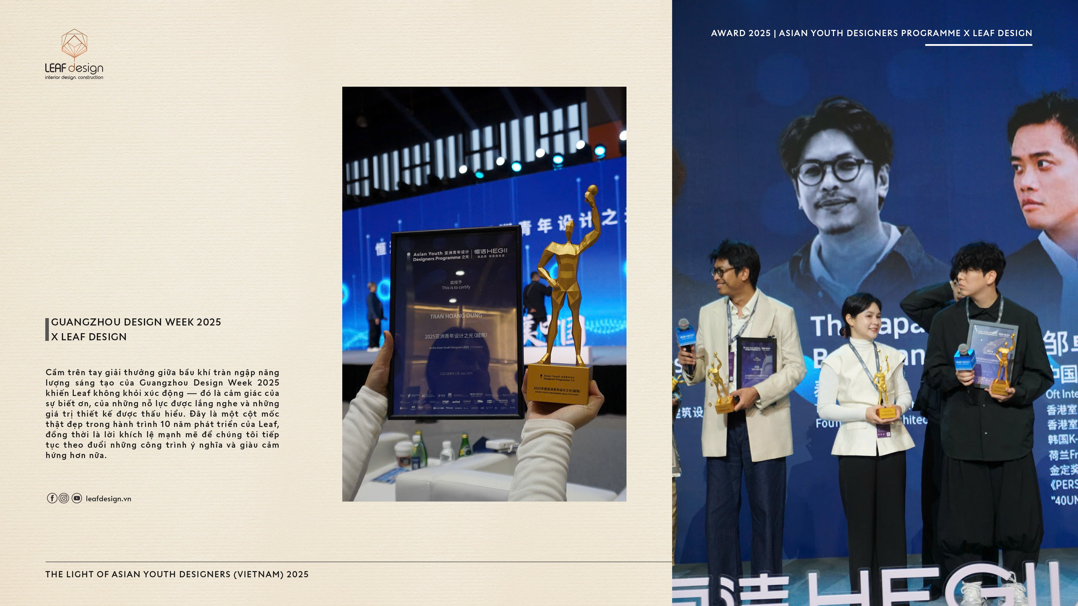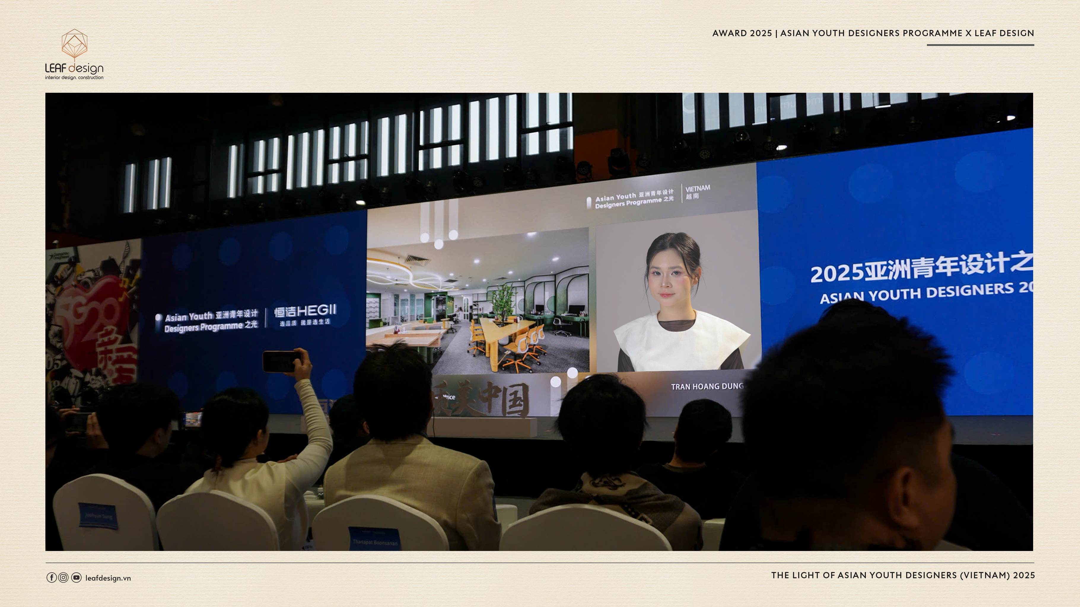 Là một niềm vinh dự lớn lao khi công trình thiết kế của Leaf được xuất hiện tại lễ trao giải thường niên Asian Youth Designers Programme và được vinh danh với giải thưởng The Light of Asian Youth Designers (Vietnam) 2025.