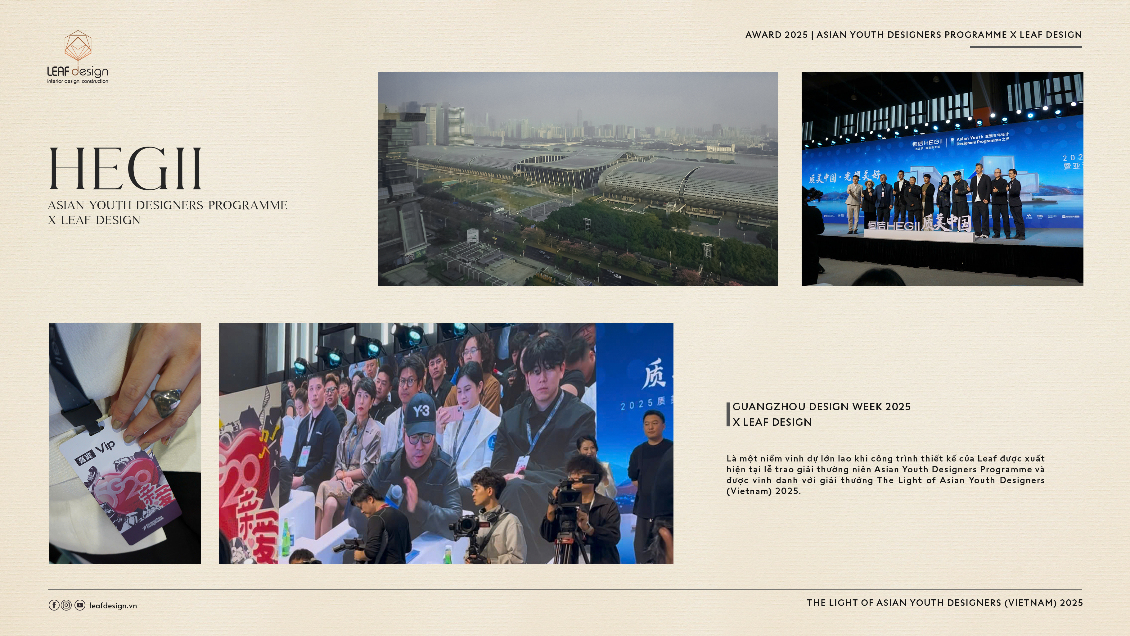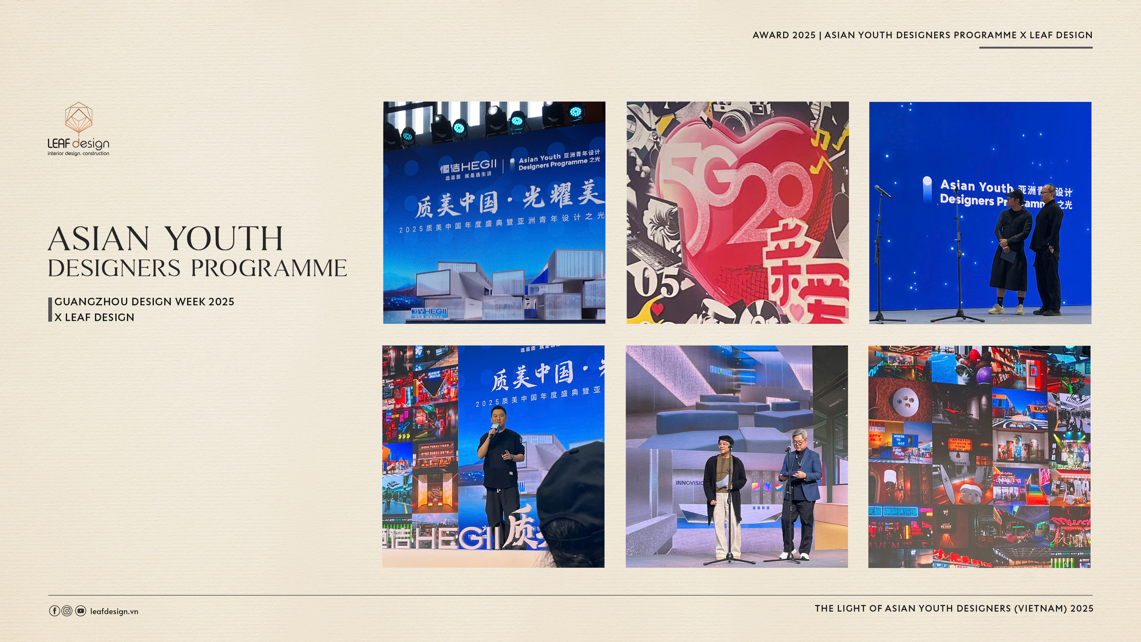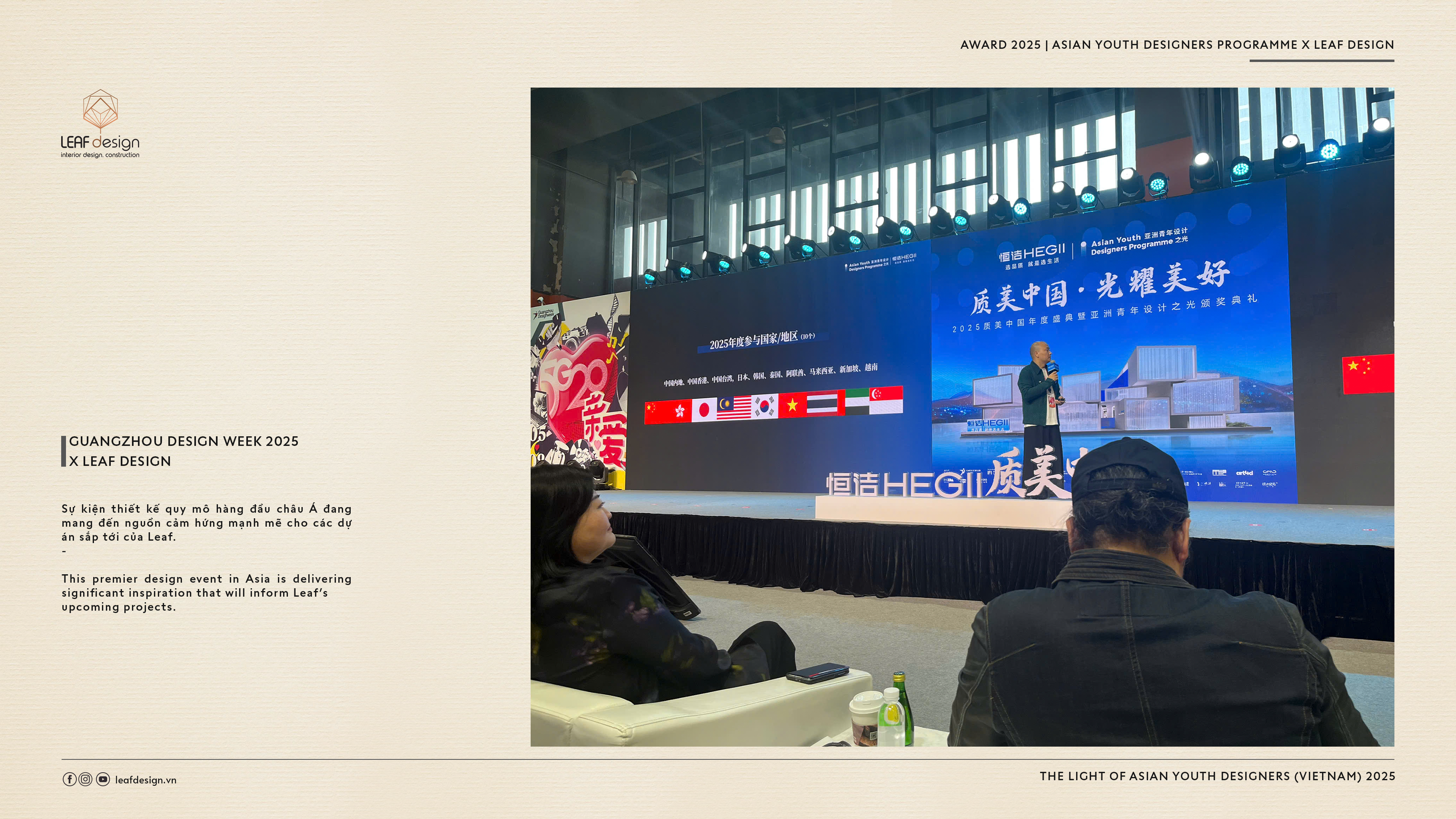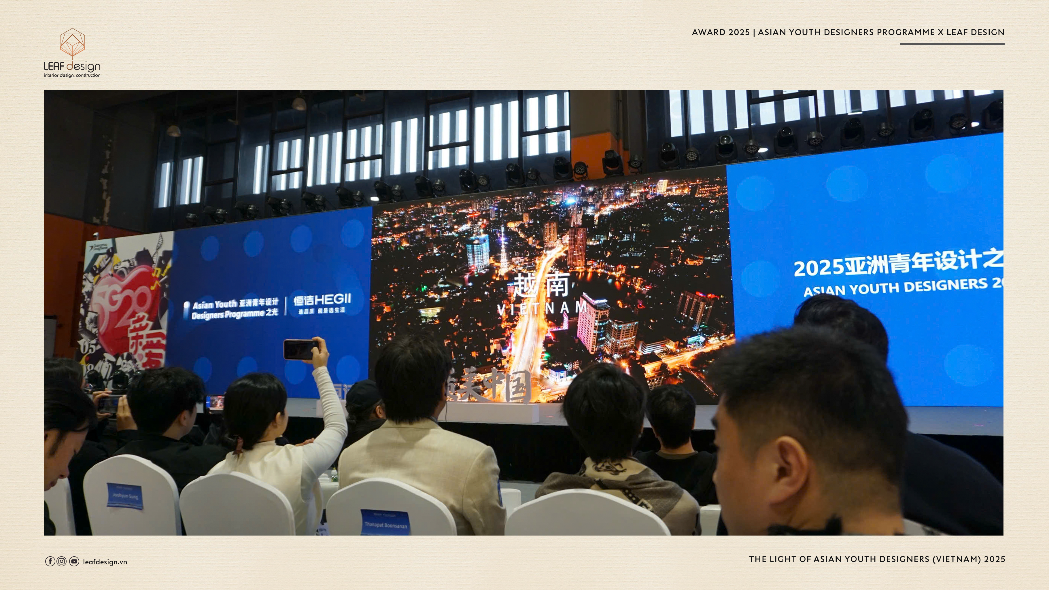 Là một niềm vinh dự lớn lao khi công trình thiết kế của Leaf được xuất hiện tại lễ trao giải thường niên Asian Youth Designers Programme và được vinh danh với giải thưởng The Light of Asian Youth Designers (Vietnam) 2025.