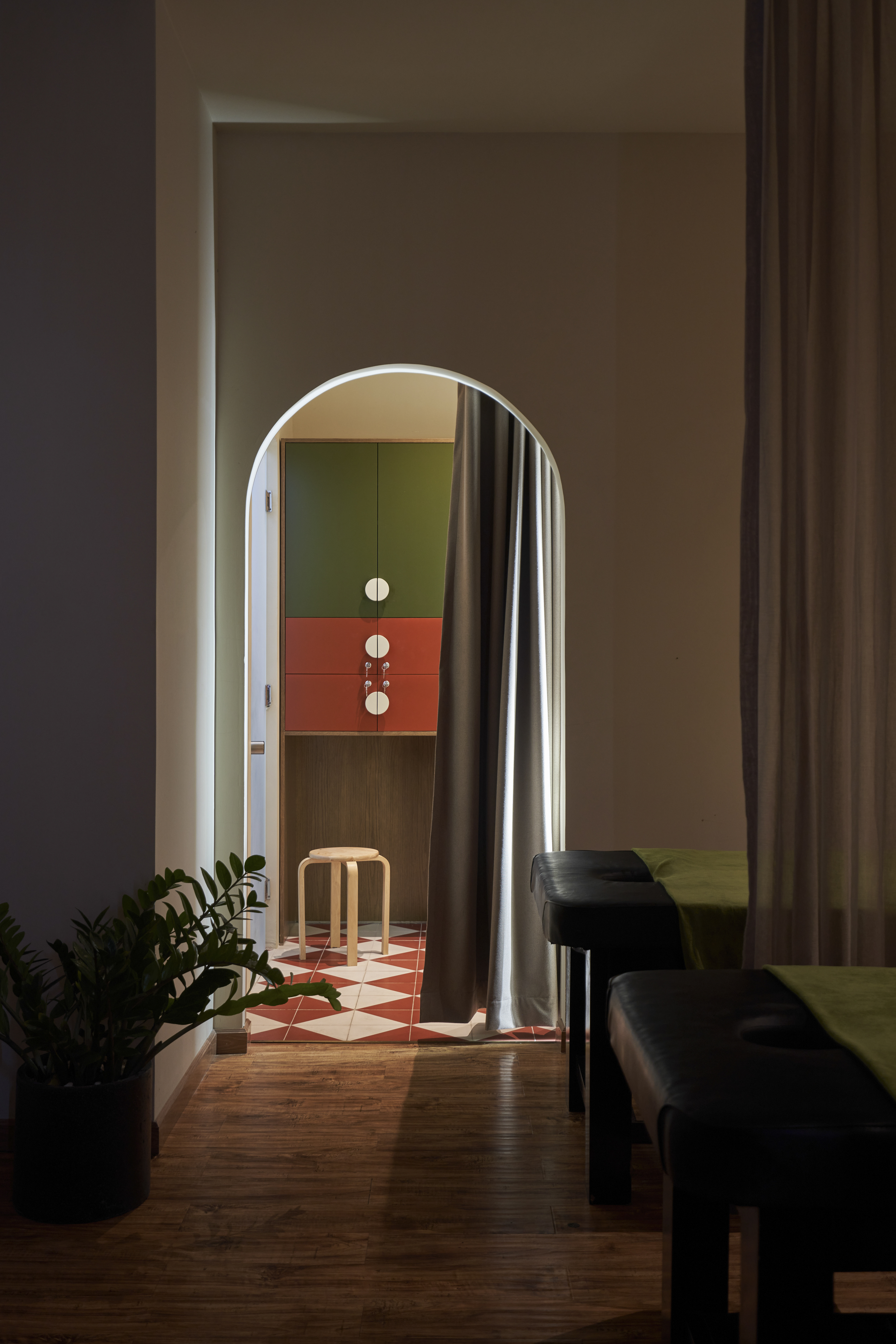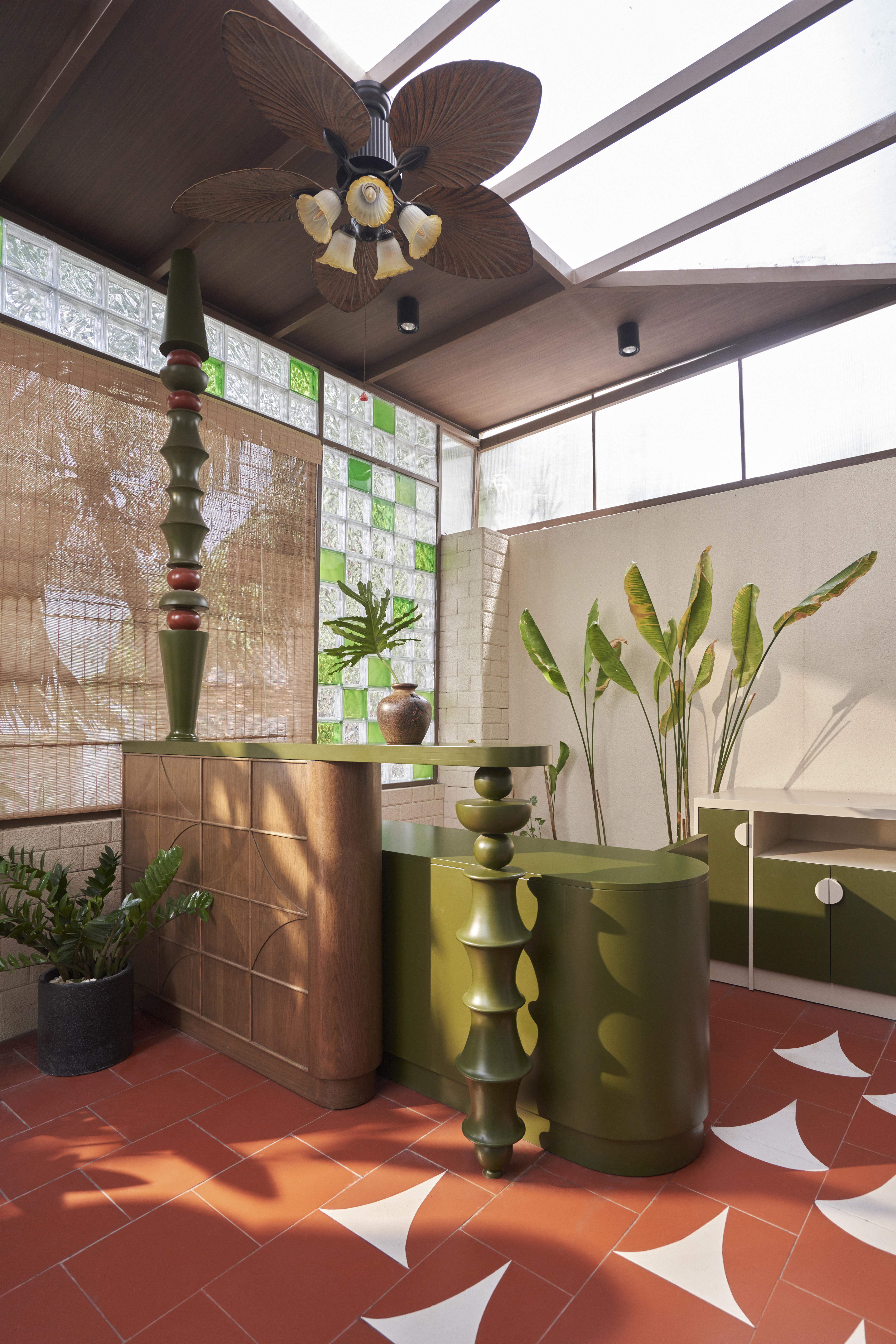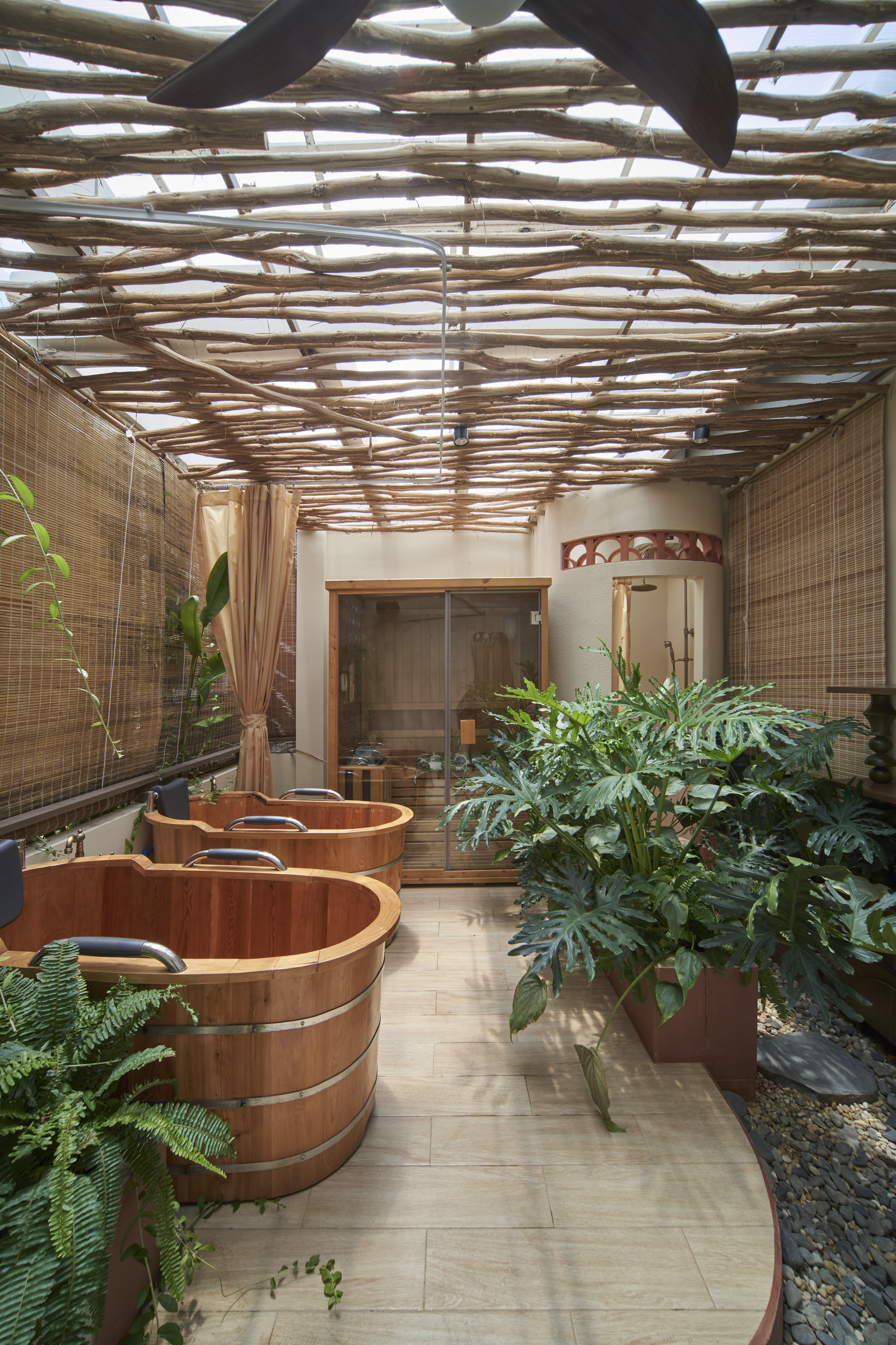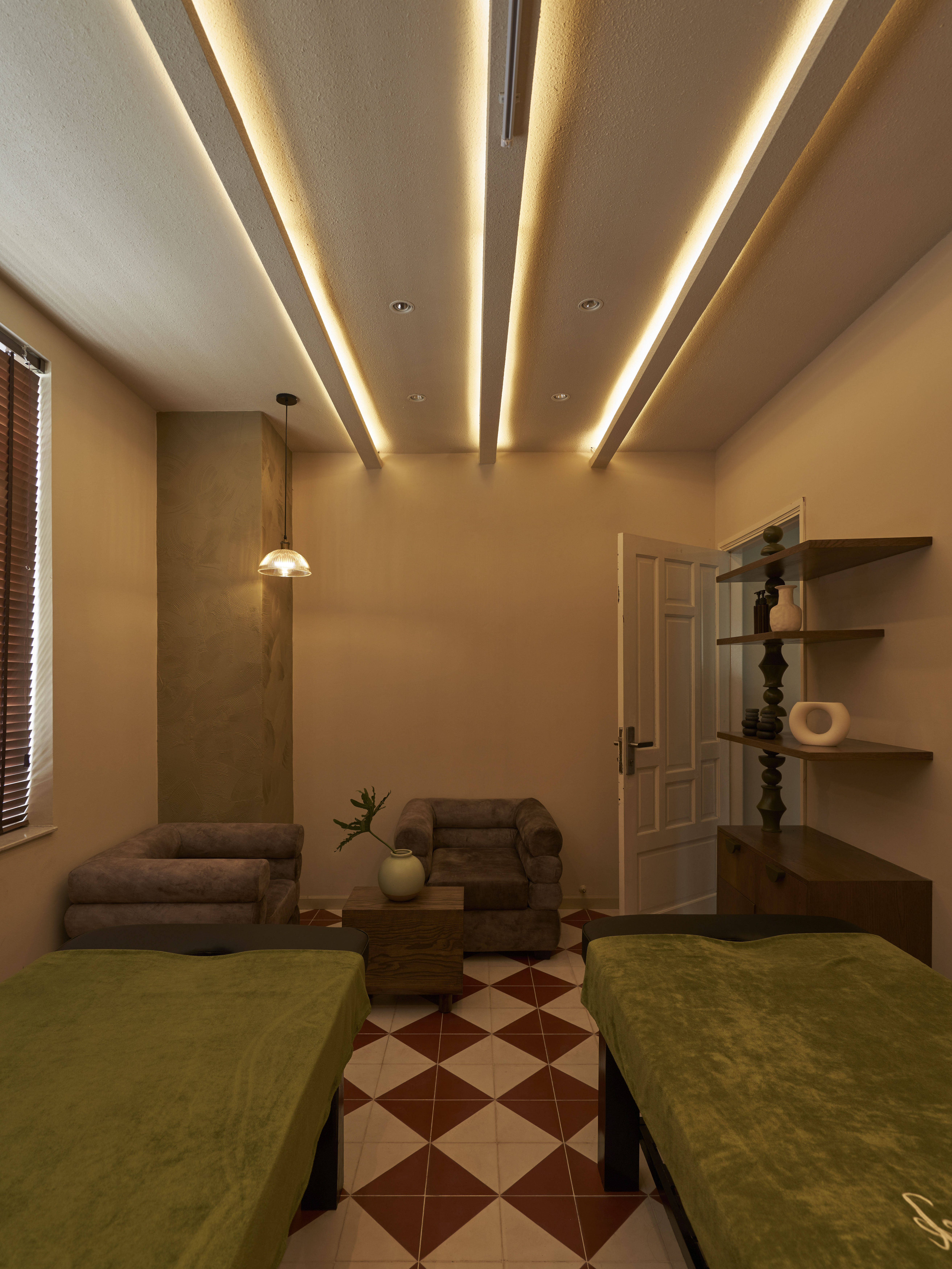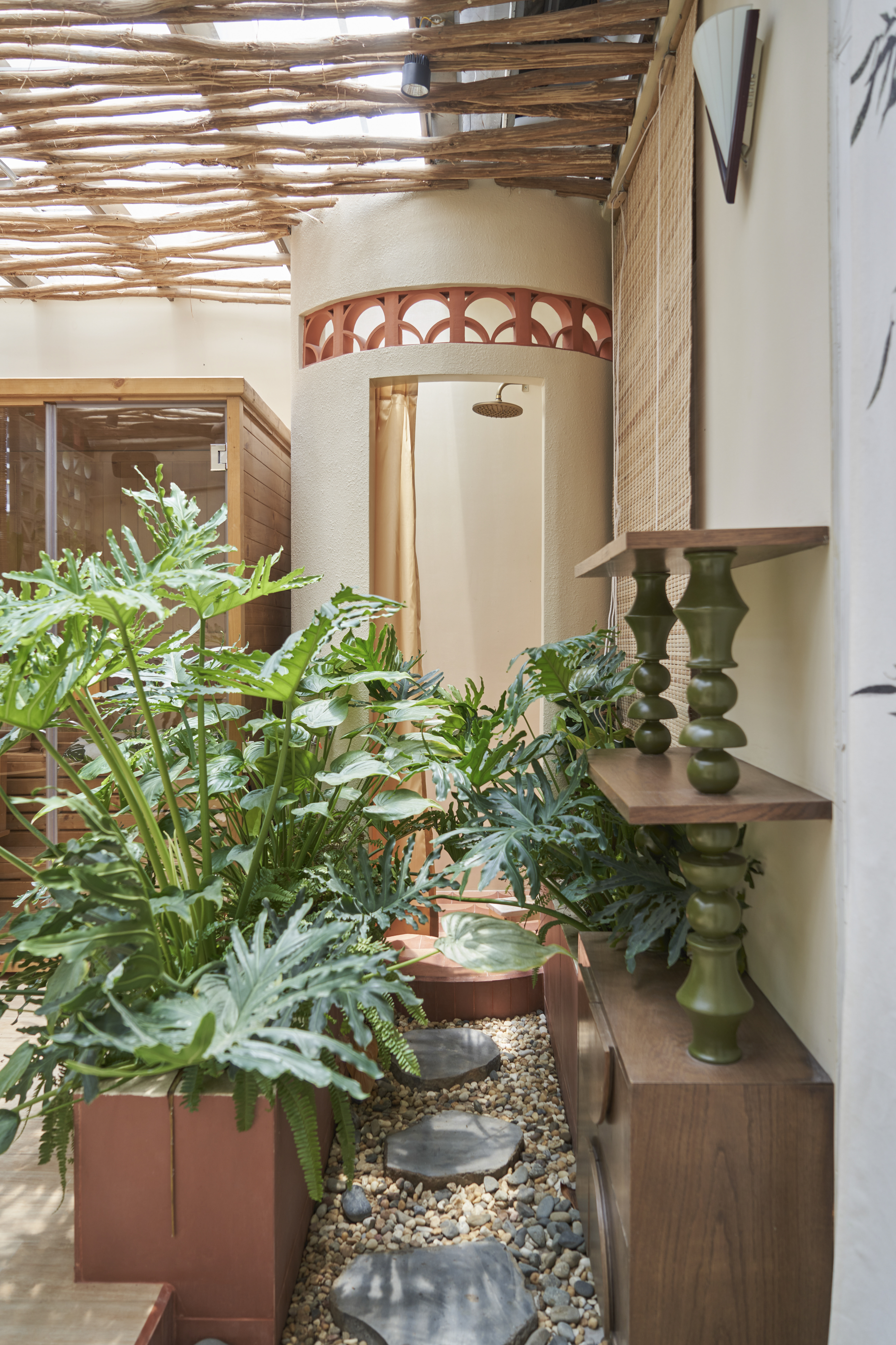 Là cơn gió mát len qua mái cây tinh tươm, là vẻ thân quen của họa tiết con tiện, là sàn nhà đỏ thắm như mái ngói và gạch thông gió vẫn ở cao tít trên bức tường trắng. Beautystack Spa qua bàn tay Leaf thi công là một không gian của sự biến tấu và tái hiện từ khung cảnh ngôi nhà có mảnh vườn và cái sân rộng của làng ta.