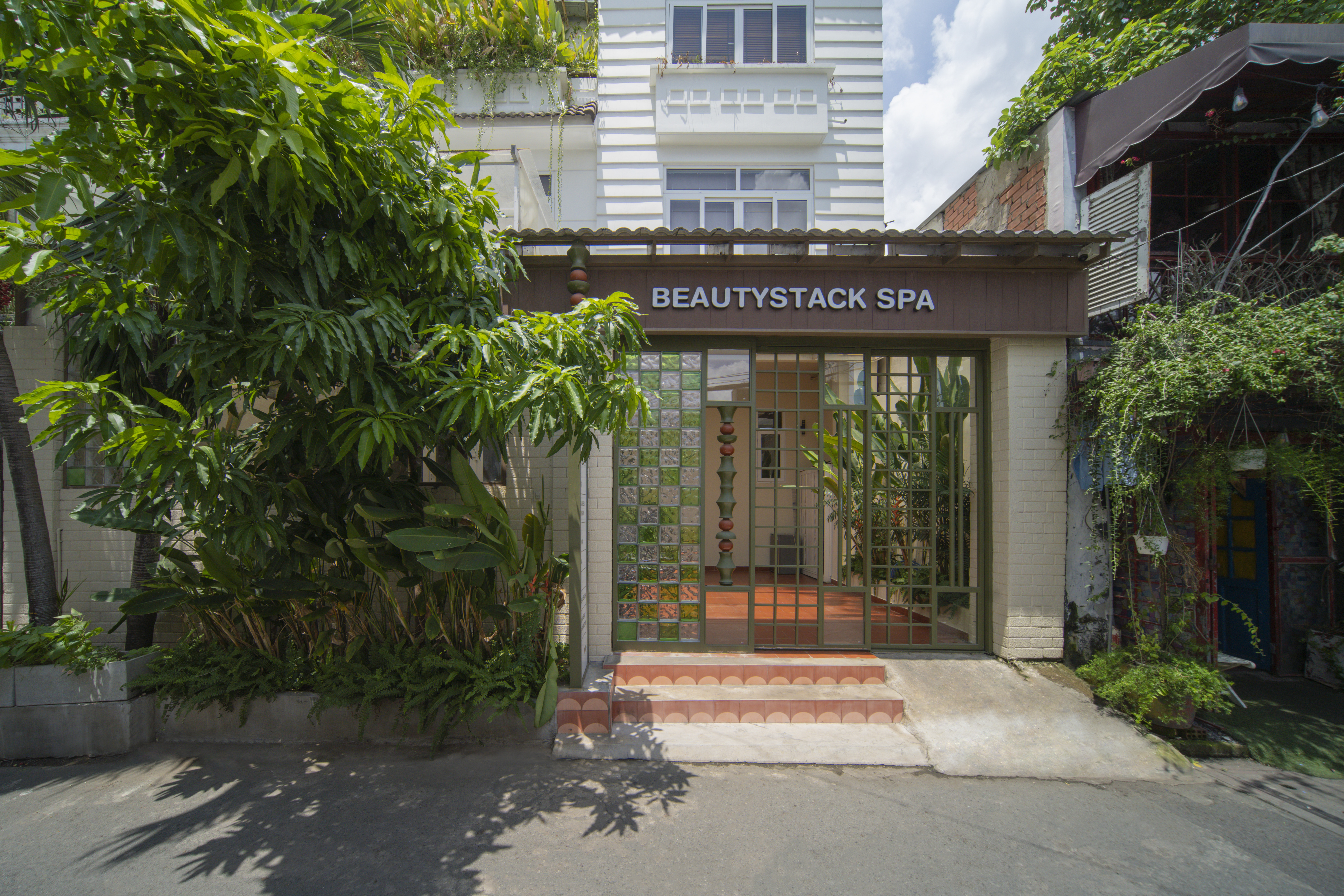 Nestled in a small alley in the Thao Dien area, Beautystack Nail Spa is a project renovated from an old house, with optimal investment costs. The design task is to bring a tropical breath into the space, creating harmony with the surrounding scenery.