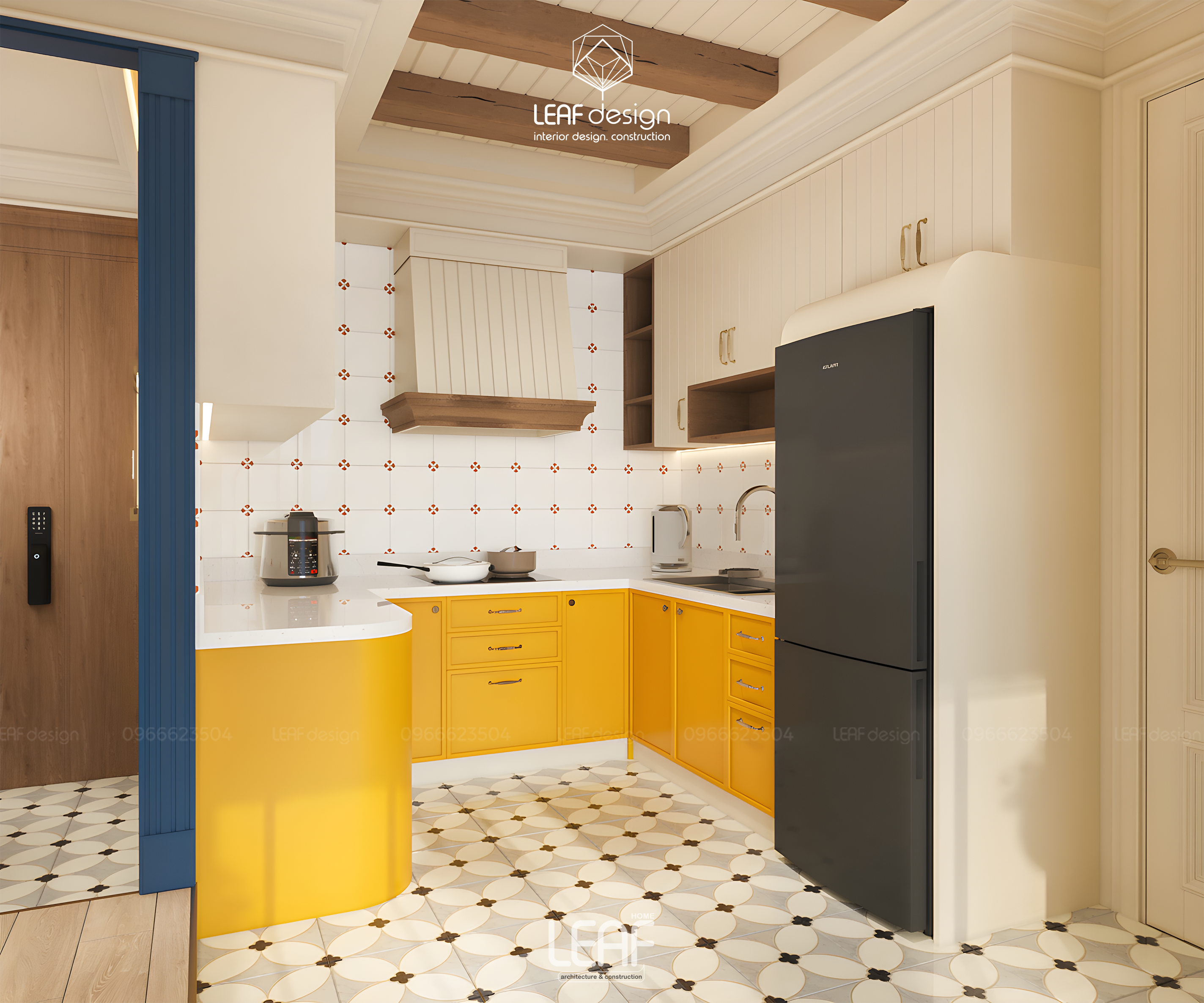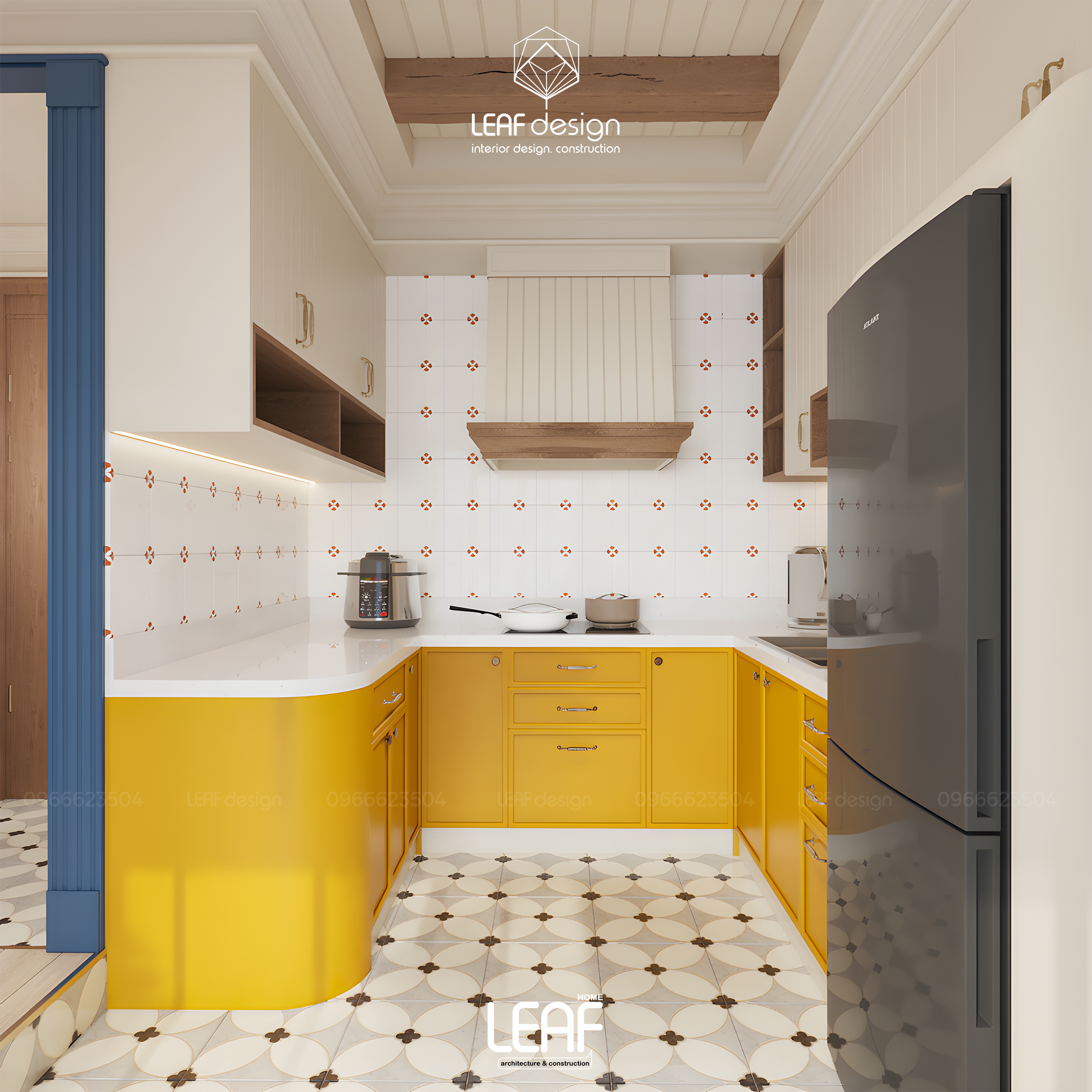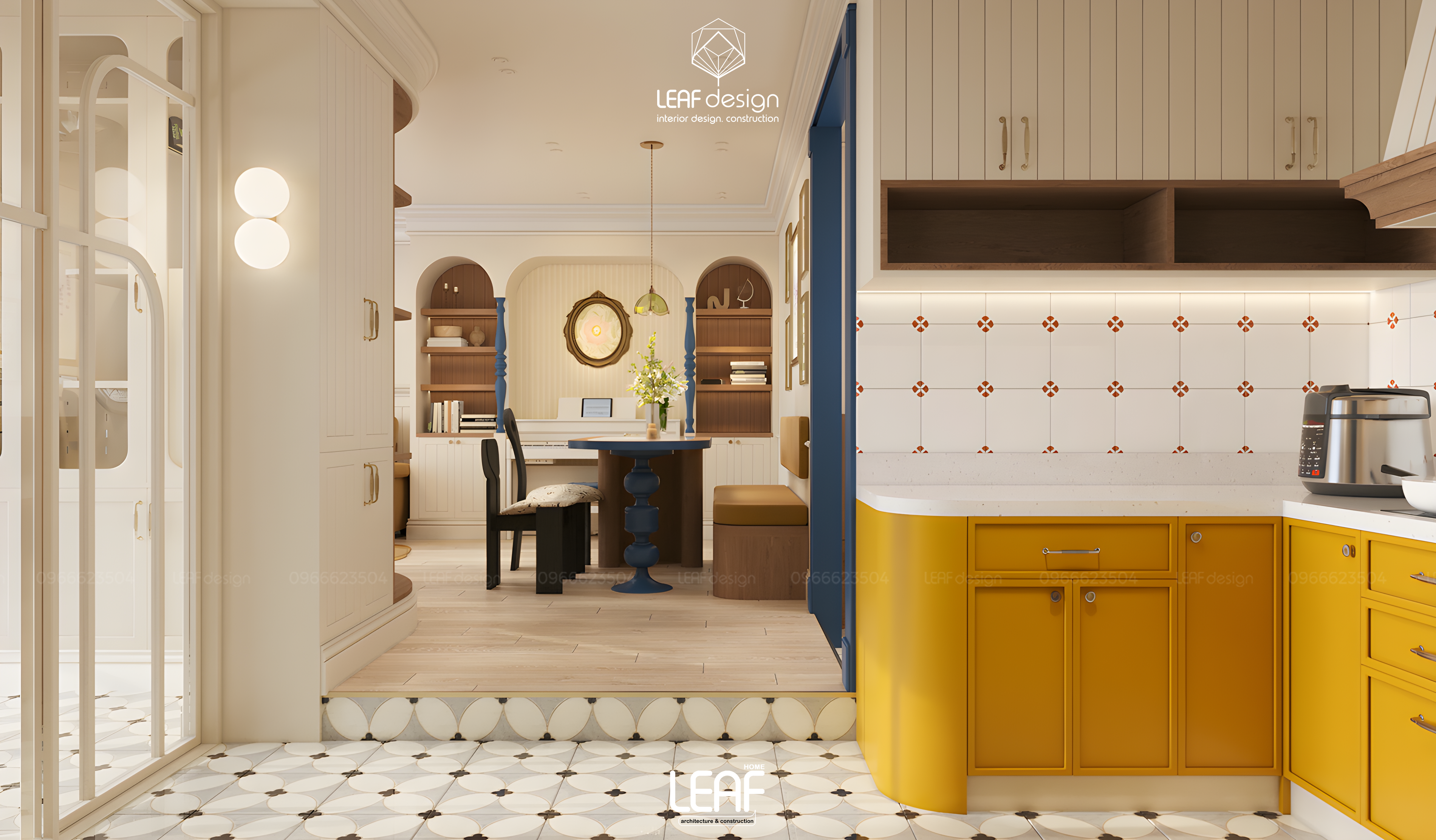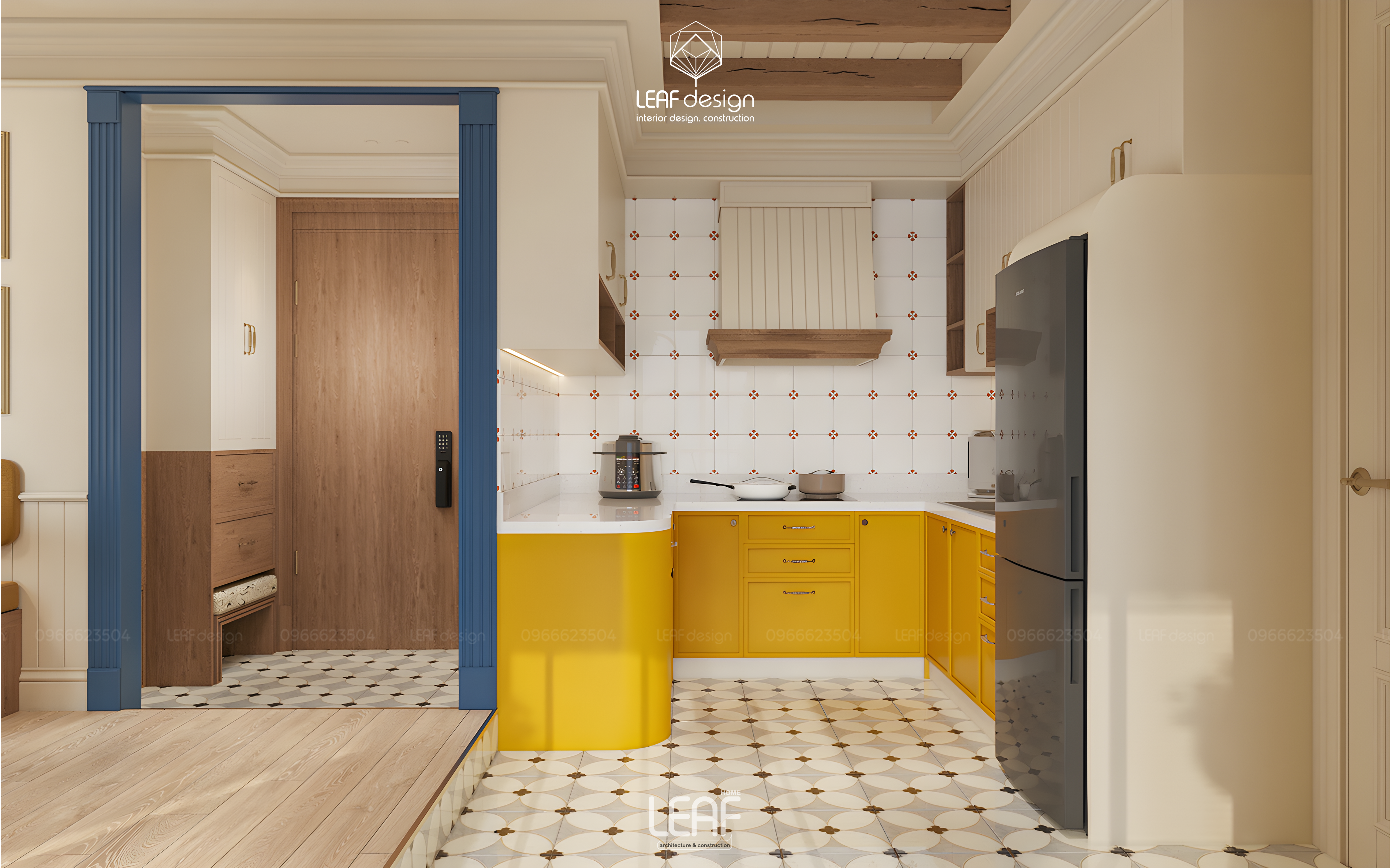 Thiết kế ưu tiên cảm giác sử dụng, các đường cong mềm tạo sự liền mạch, gỗ sáng và gạch hoa mang lại nền cảm xúc thân thuộc, trong khi những điểm xuyến vàng – xanh cobalt thổi vào không gian nét tươi trẻ, đậm cá tính. Ở đây, người ta làm việc trong ánh nắng, nấu ăn giữa những gam màu vui mắt và nghỉ ngơi trong một không gian nhẹ nhàng nhưng không tĩnh. Một căn hộ đủ sinh động để mỗi ngày trôi qua luôn dễ chịu và đầy năng lượng.
