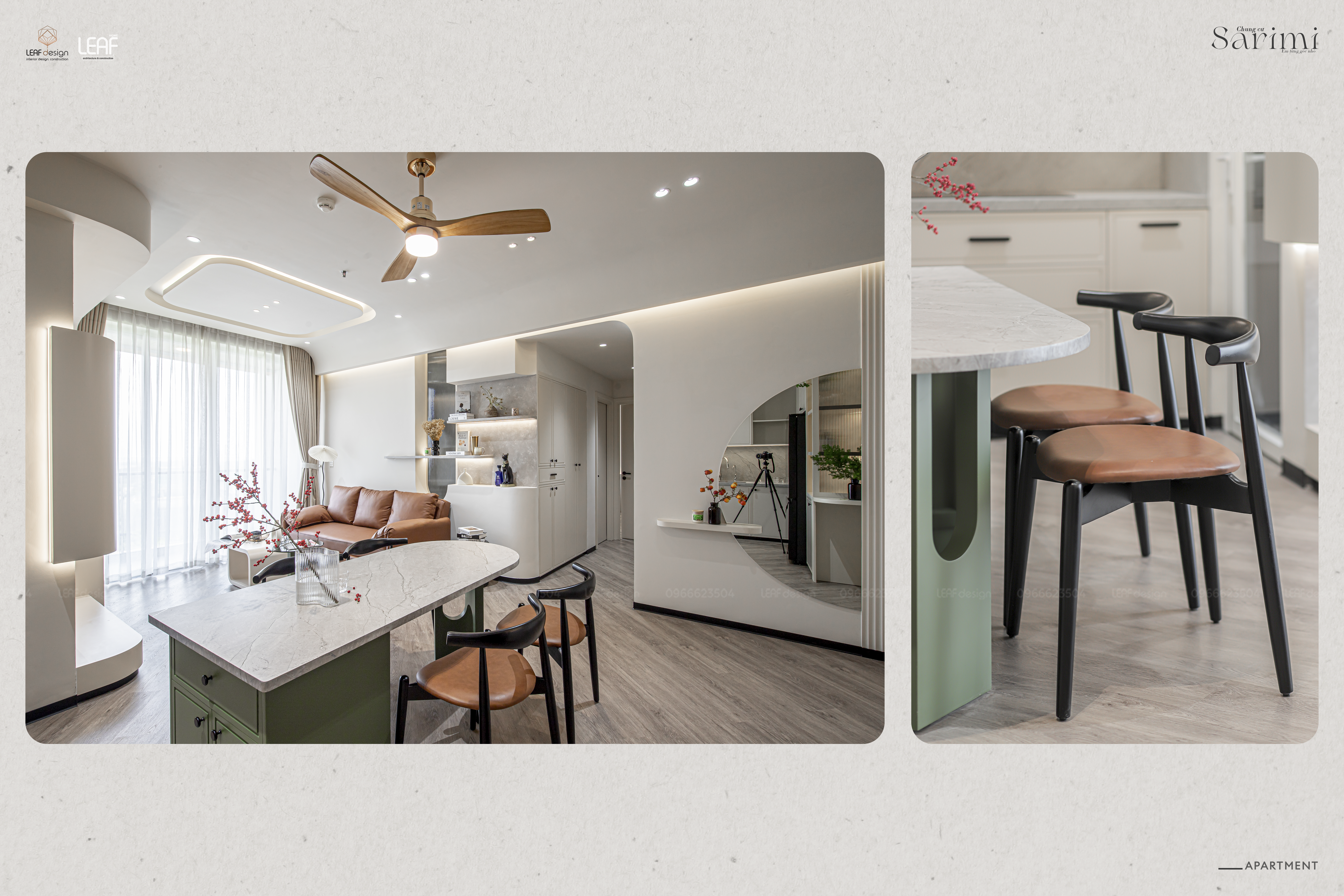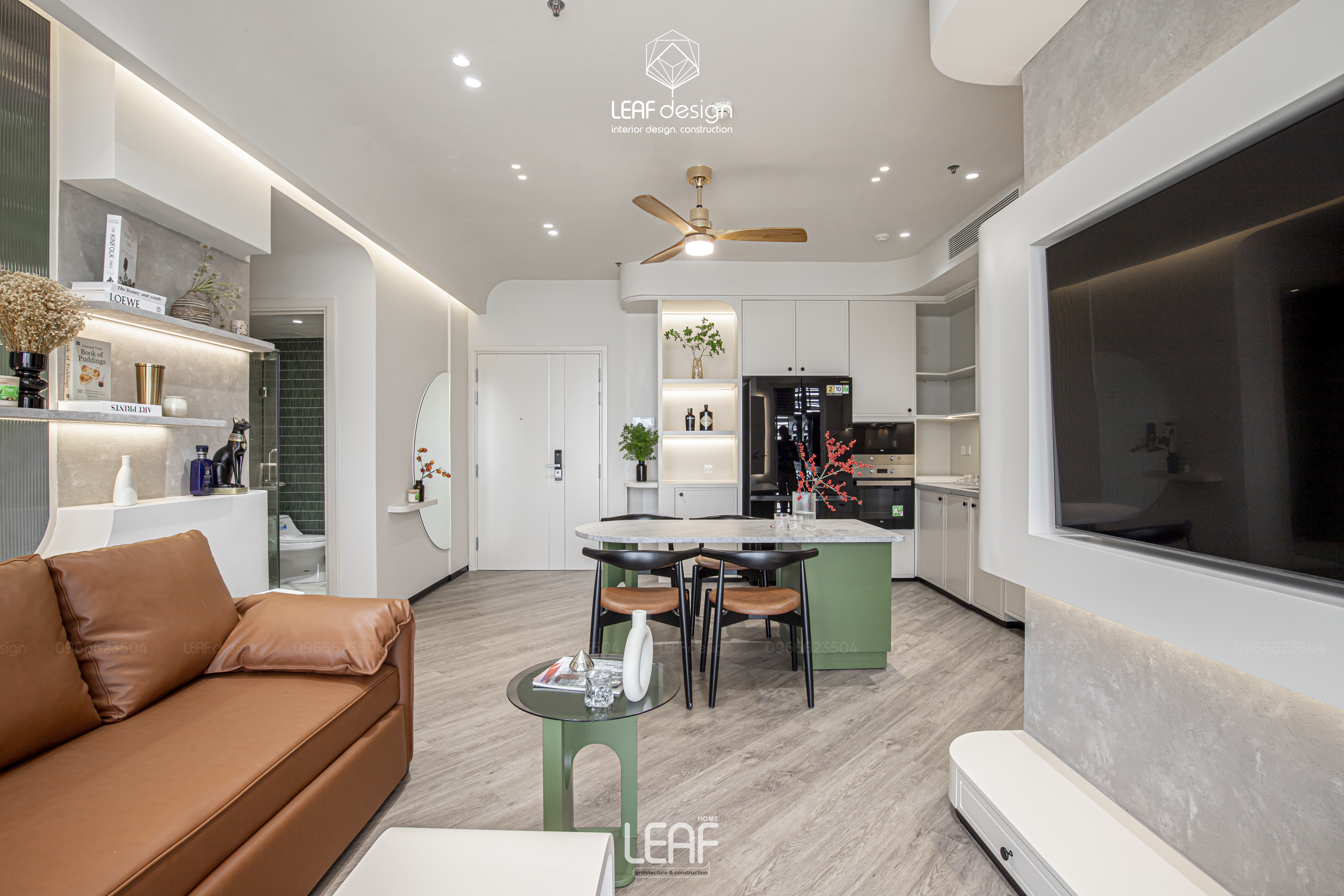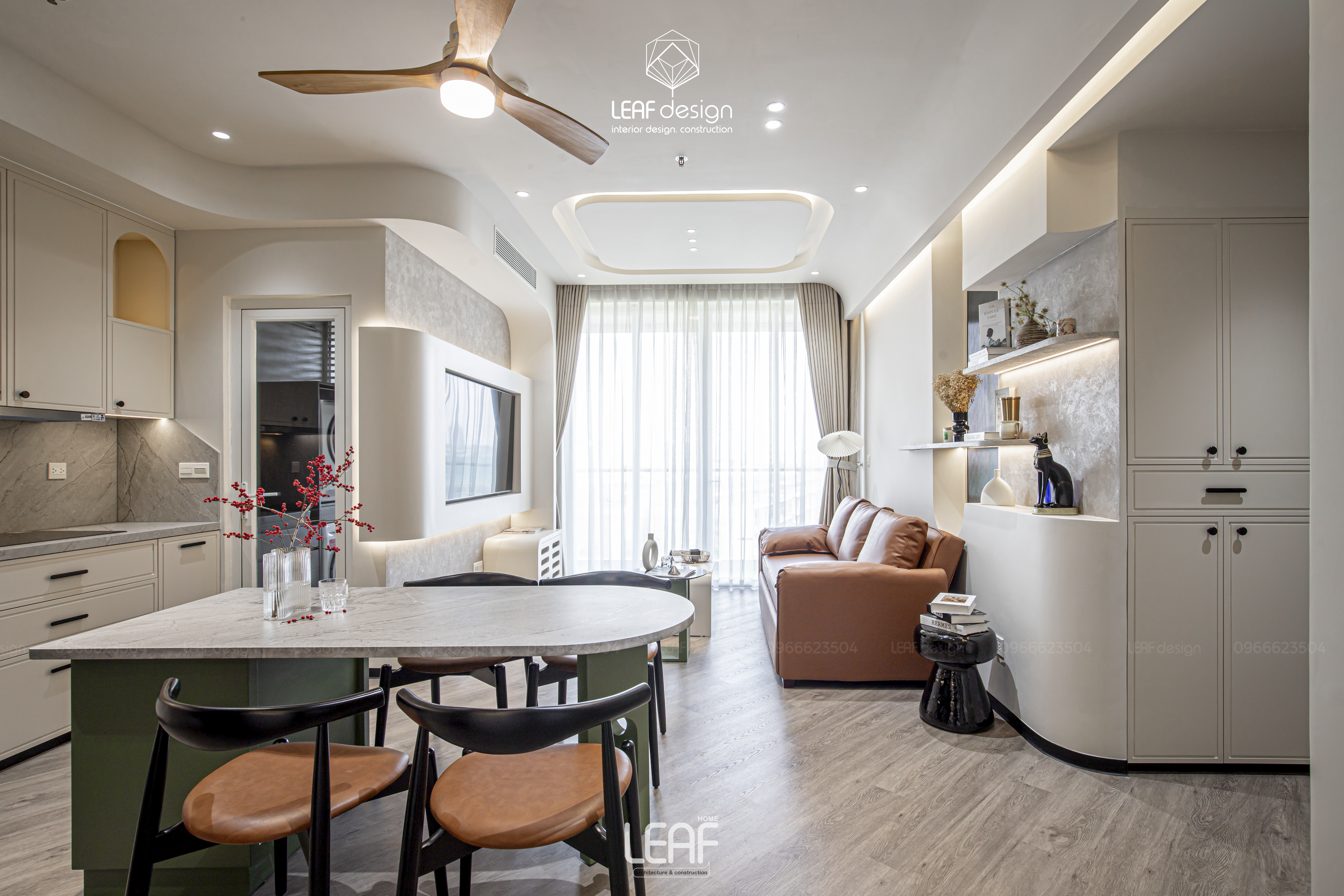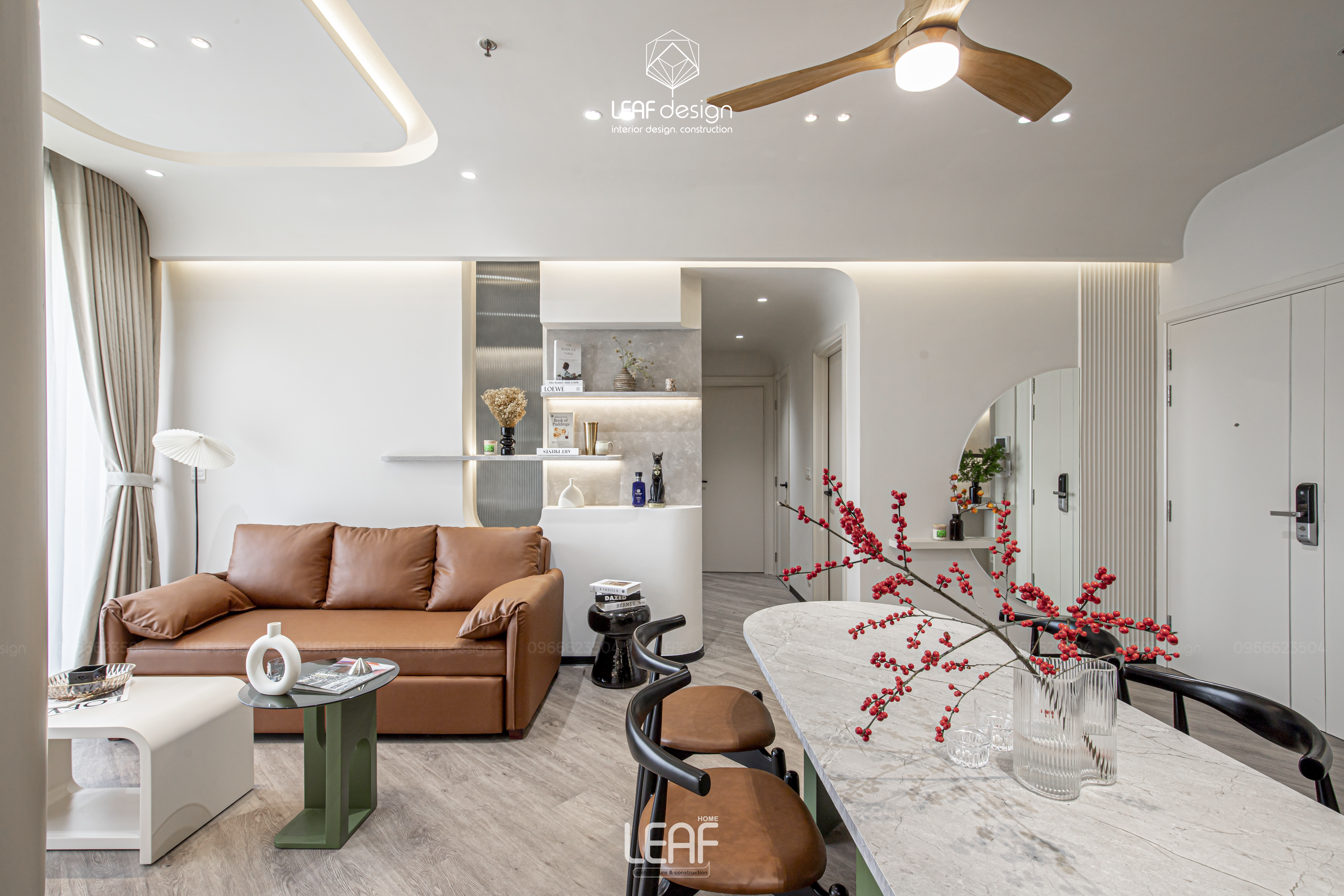 Đó là ngôi nhà phủ màu trắng sữa trong veo, hoạ điểm những mảng xanh tươi mát rất hồn nhiên. Khu đảo bếp tinh khôi mang đường nét hiện đại, được hoàn thiện sắc sảo trên chất liệu gỗ, đá marble. Đường cong mượt mà của nếp tường, khuôn bàn, dáng tủ đem đến vẻ điềm nhiên sang trọng cho không gian. Nếu phòng ngủ của bé tràn đầy nét ngọt ngào, thì không gian riêng của gia chủ lại toát lên cá tính mạnh mẽ trong tông xám trắng tinh giản. Không chỉ kiến tạo nên một cấu trúc đẹp, Leaf còn chăm chút từng chi tiết nội thất, từ thiết kế đến chế tác để để có thể tạo nên một ngôi nhà bền bỉ, êm từng góc nhỏ.