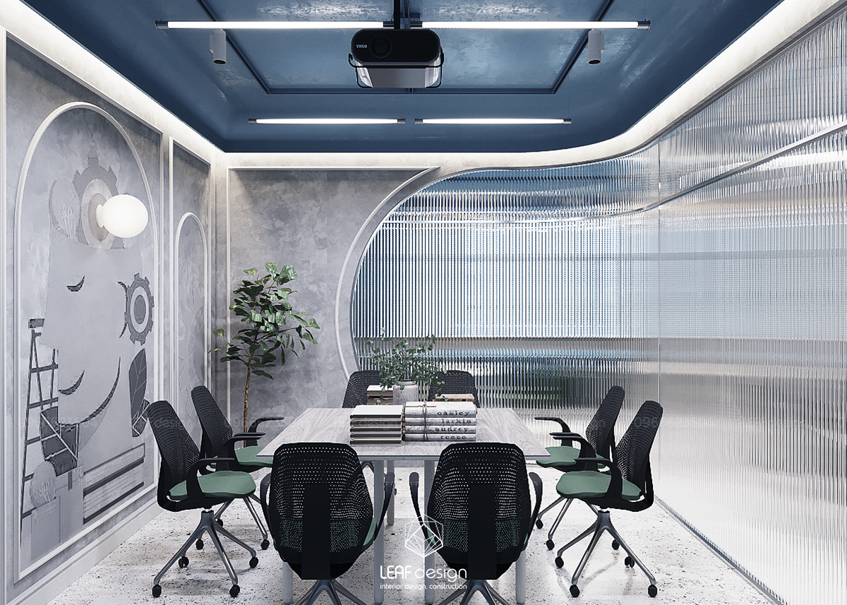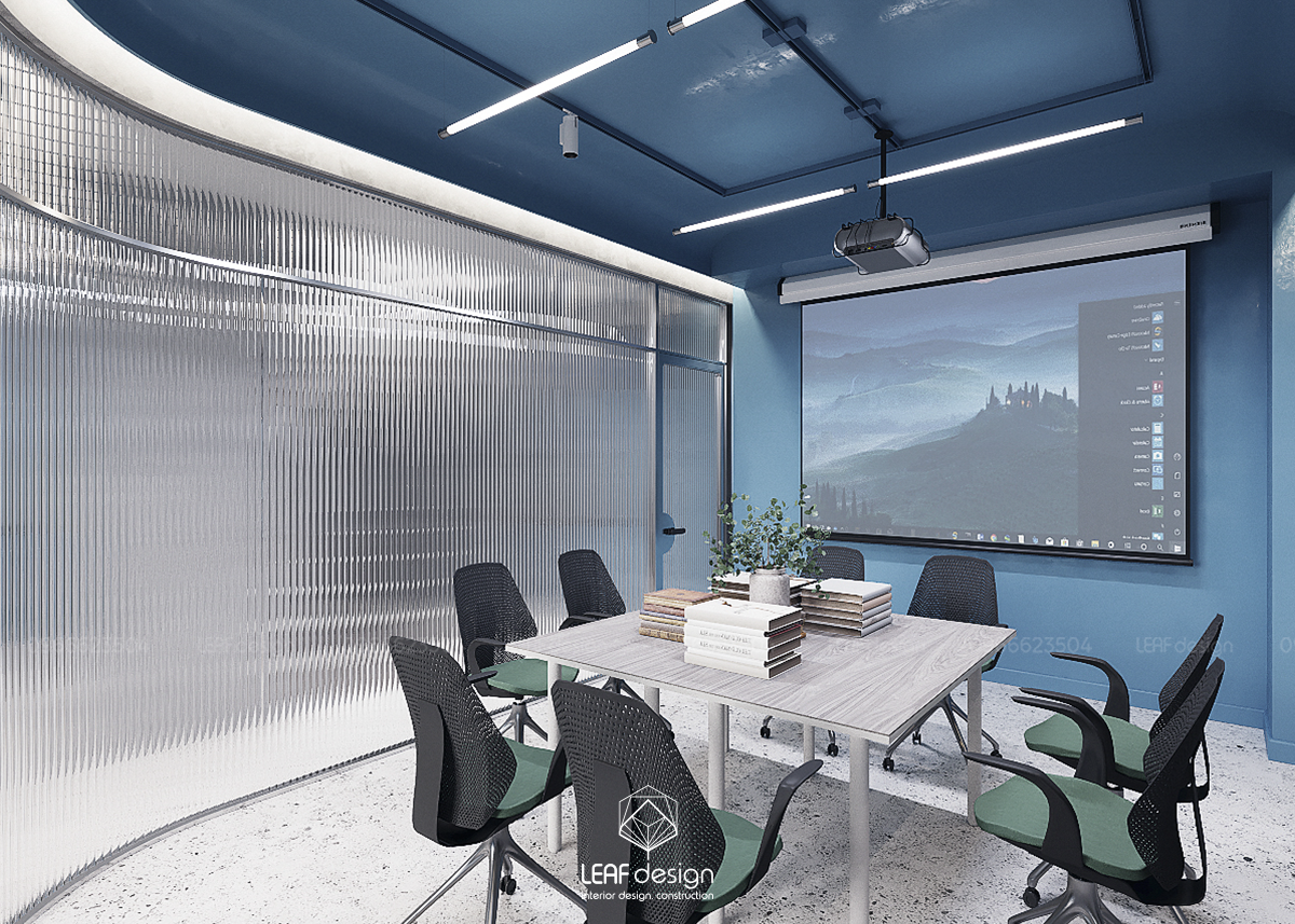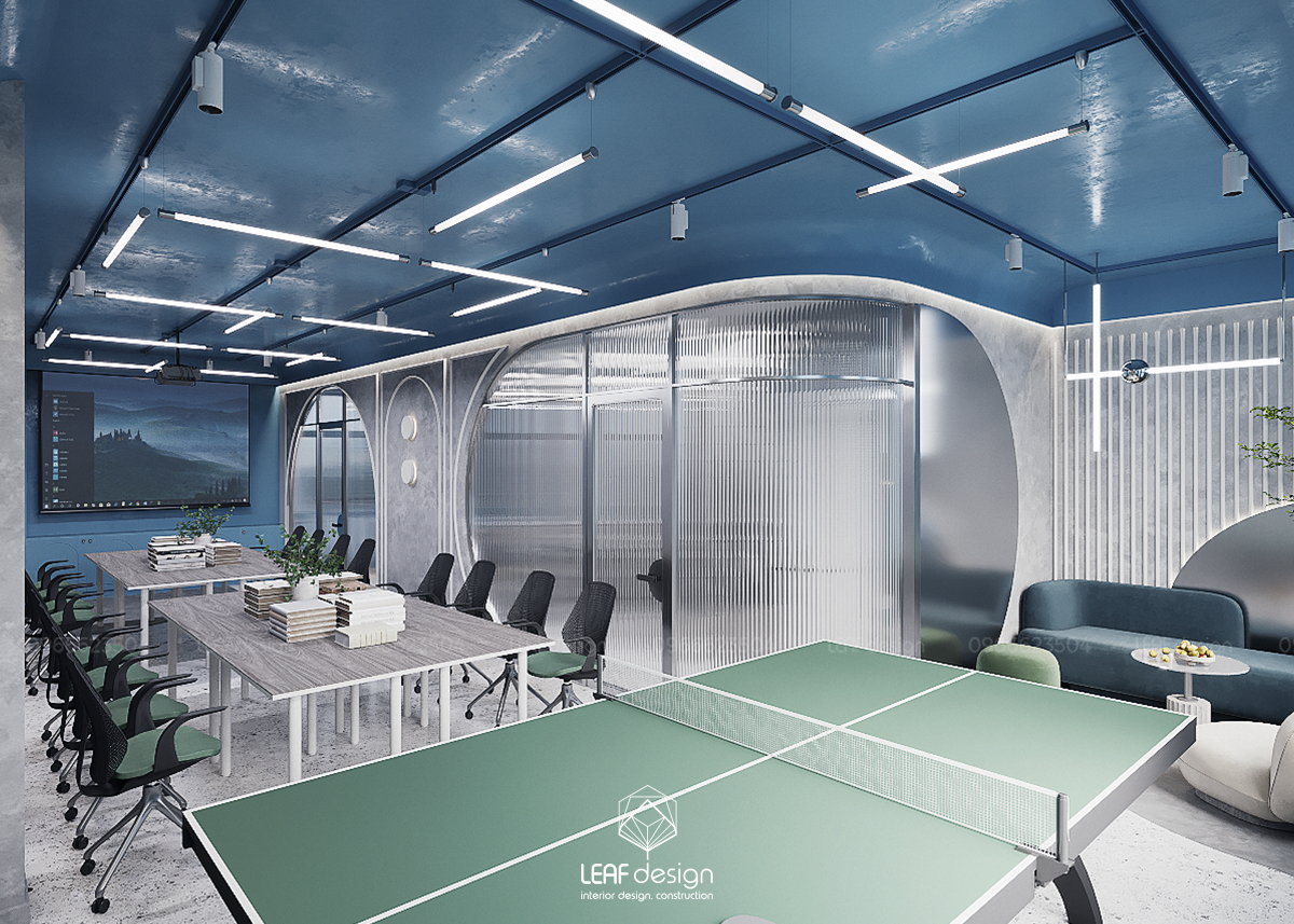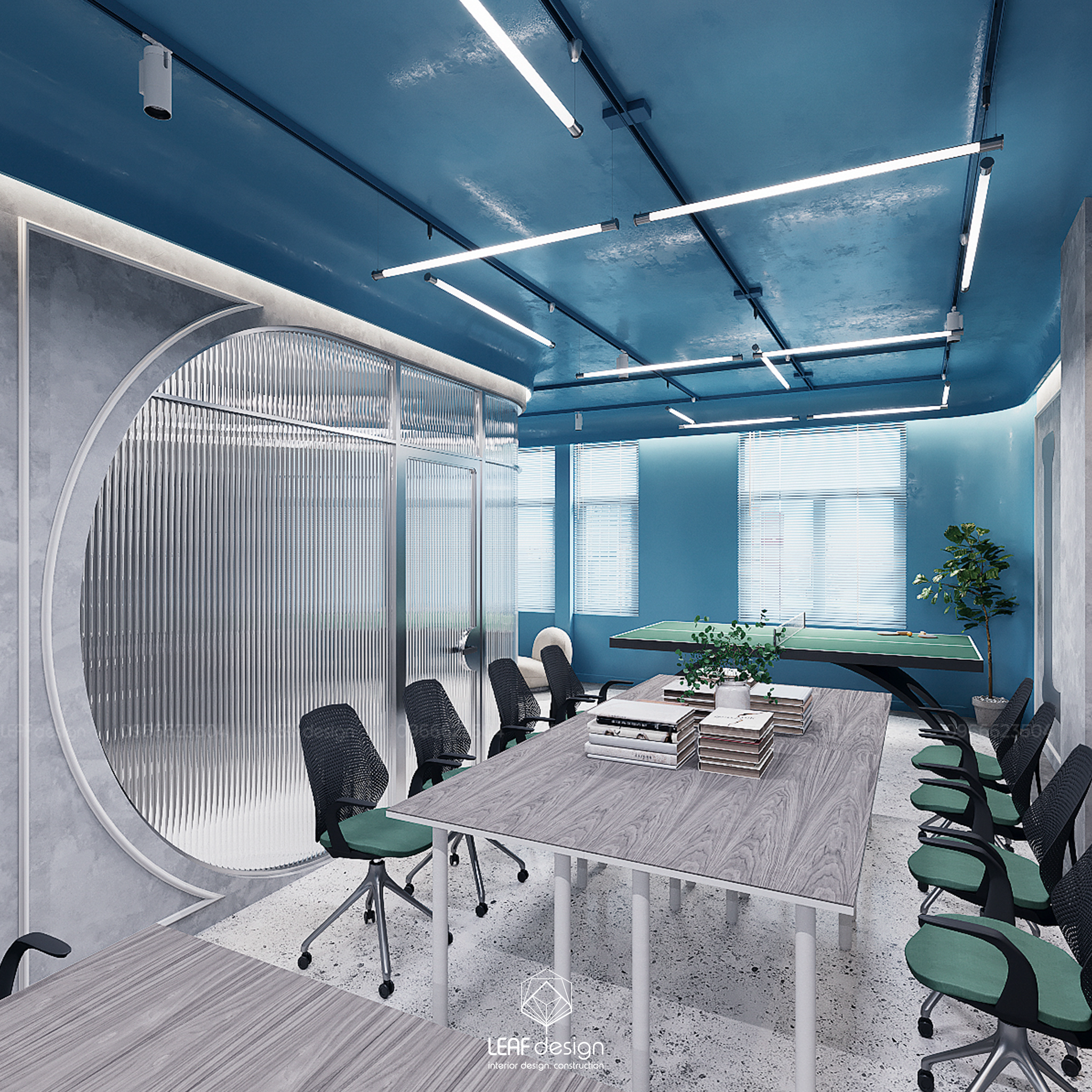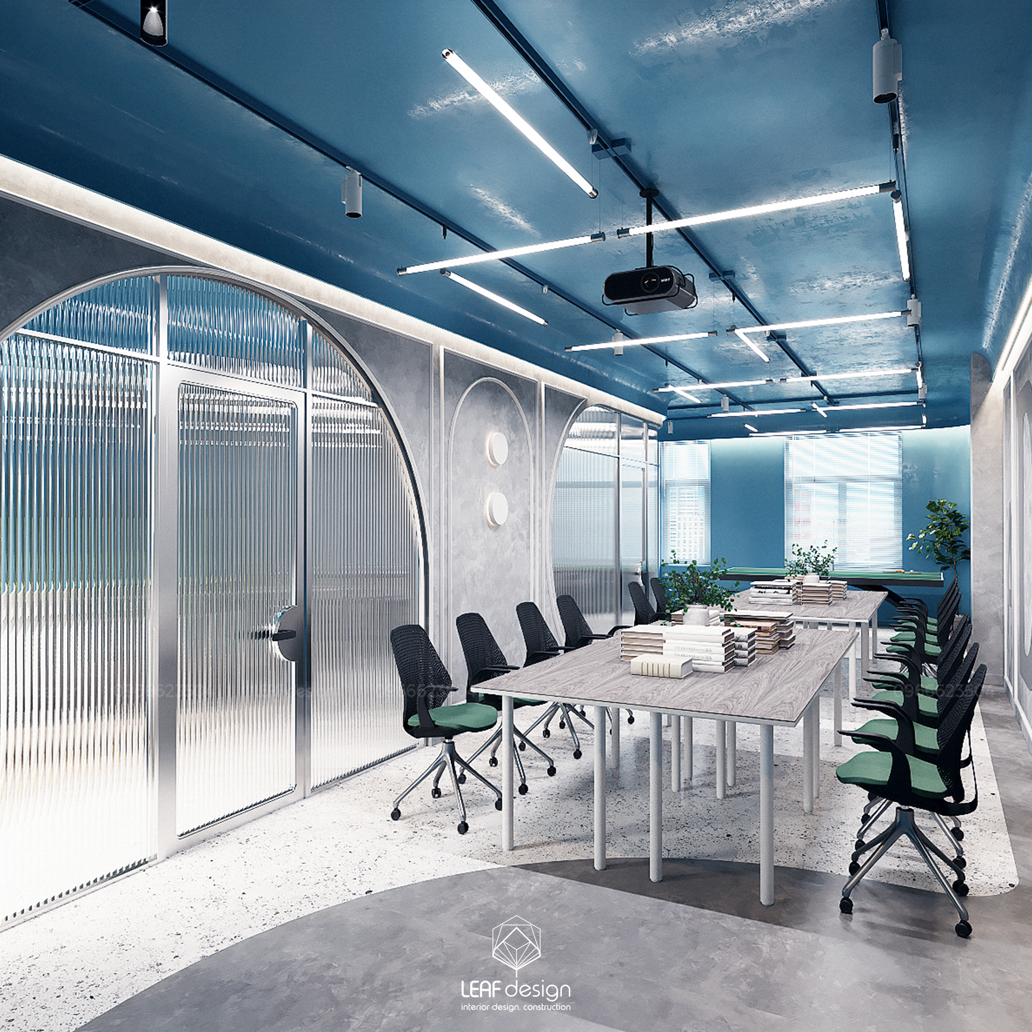 Tựa mặt nước phẳng lặng phản chiếu những ý niệm đang hình thành, có khi lấp lánh những mảng bạc của kính vân, có lúc sâu thẳm trong gam xanh biếc nhẵn mịn. Ánh sáng tự nhiên chạm vào từng lớp vật liệu, tạo nên chuyển động nhẹ nhàng theo thời gian, trong khi gỗ sáng neo lại cảm giác gần gũi ấm áp. Mang dáng dấp của biển nhưng không gian ấy vẫn giữ một trật tự rất đời, ghế bàn ngay ngắn là điểm khởi đầu, và mỗi bước tiến đều mở ra những khoảng dừng tự do.